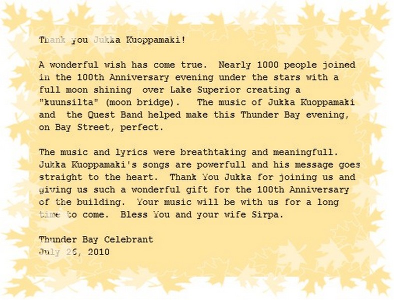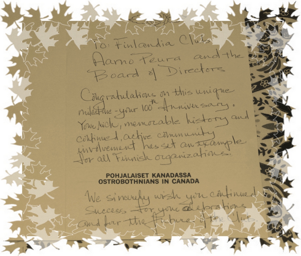 THANK YOU/KIITOS FROM THE 100TH ANNIVERSARY COMMITTEE